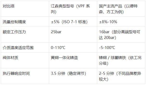 江森二通阀的核心优势在于动态平衡与电动控制一体化。以VPF系列为例,其内置独立平衡阀结构,能在20-200kPa压差波动范围内维持流量恒定,从根源解决暖通系统水力失调问题,尤其适配大型中央空调的变流量系统。这种 “抗干扰能力” 是国产多数基础型号不具备的——国产阀更侧重基础通断/调节功能,仅少数高端型号(如上品森超级双相钢系列)通过外置平衡组件实现类似效果,但系统集成度较低。